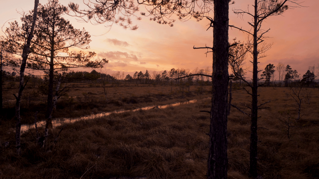 Det är natt. Två laserrelän är äntligen utplacerade efter mycket hård och mödosam vandring över myren med mosskor. Där är dem. Två blinkande röda stjärnor i horisonten, deras raka strålar skär igenom natten mellan mossens dvärgtallar. Mot mig.