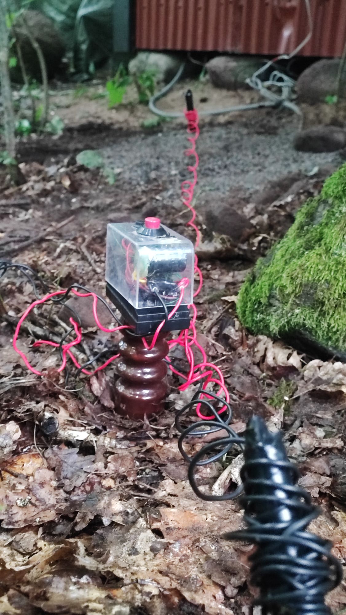 Jag befinner mig i ett lite rum precis under en verkstad nu tomt ekande. En rostig gammal lysrörsarmatur blinkar igång. Hit nådde aldrig de skador som oväntad markburen fukt en gång infuserade all omkringliggande subterrär byggnation med. Väggarna är klädda i borstad plåt som här och var är perforerad i rader av indikationslampor metodiskt utplacerade inom grafiska ramlinjer tillsammans med strömbrytare och reglage. Härifrån kan det mesta styras som rör min mark och avlägsna myrexperiment. För den initierade är alla symboler, ljussekvenser och färgkombinationer helt självklara. Nästan som om dessa kunde avslöja alla världens pågående hundra-årskonspirationer visar de mig ett verkligt överflöd av information. Här allt ibland – finns även en inbyggd sortimenthylla. Den innehåller mina mest dyrbara komponenter från världens bästa tillverkare. Detta ovanliga underjordiska besök bär nu med sig några av dessa små byggstenar. Ett litet steg i en helt ny typ av antennktets som sakta konstrueras. En antenn som kanske kommer överträffa allt tidigare! I början av augusti skall jag ut i myrmarkerna igen med helt ny utrustning. Inget ska startas upp utan att jag fullt utrustad med högspänningsdräkt befinner mig minst 100m bort ifrån stimulationskretsen.