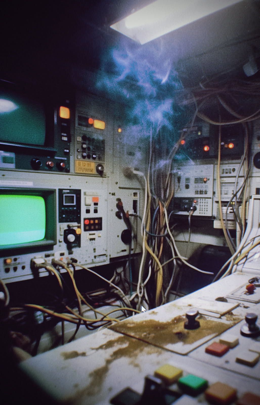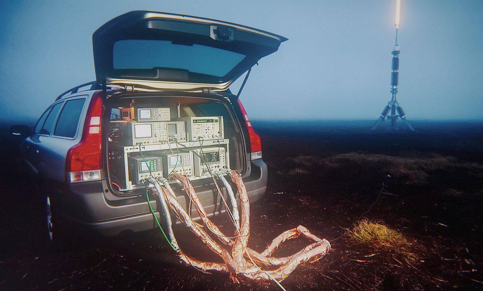 Jag befinner mig i ett lite rum precis under en verkstad nu tomt ekande. En rostig gammal lysrörsarmatur blinkar igång. Hit nådde aldrig de skador som oväntad markburen fukt en gång infuserade all omkringliggande subterrär byggnation med. Väggarna är klädda i borstad plåt som här och var är perforerad i rader av indikationslampor metodiskt utplacerade inom grafiska ramlinjer tillsammans med strömbrytare och reglage. Härifrån kan det mesta styras som rör min mark och avlägsna myrexperiment. För den initierade är alla symboler, ljussekvenser och färgkombinationer helt självklara. Nästan som om dessa kunde avslöja alla världens pågående hundra-årskonspirationer visar de mig ett verkligt överflöd av information. Här allt ibland – finns även en inbyggd sortimenthylla. Den innehåller mina mest dyrbara komponenter från världens bästa tillverkare. Detta ovanliga underjordiska besök bär nu med sig några av dessa små byggstenar. Ett litet steg i en helt ny typ av antennktets som sakta konstrueras. En antenn som kanske kommer överträffa allt tidigare! I början av augusti skall jag ut i myrmarkerna igen med helt ny utrustning. Inget ska startas upp utan att jag fullt utrustad med högspänningsdräkt befinner mig minst 100m bort ifrån stimulationskretsen.